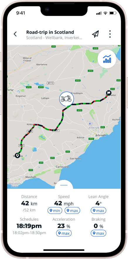 - 🗺️ Detailed trip history: Analyze speed, lean angle, and more to enhance your rides.